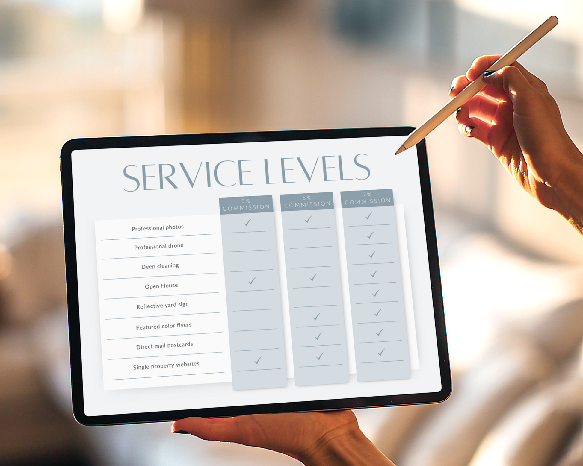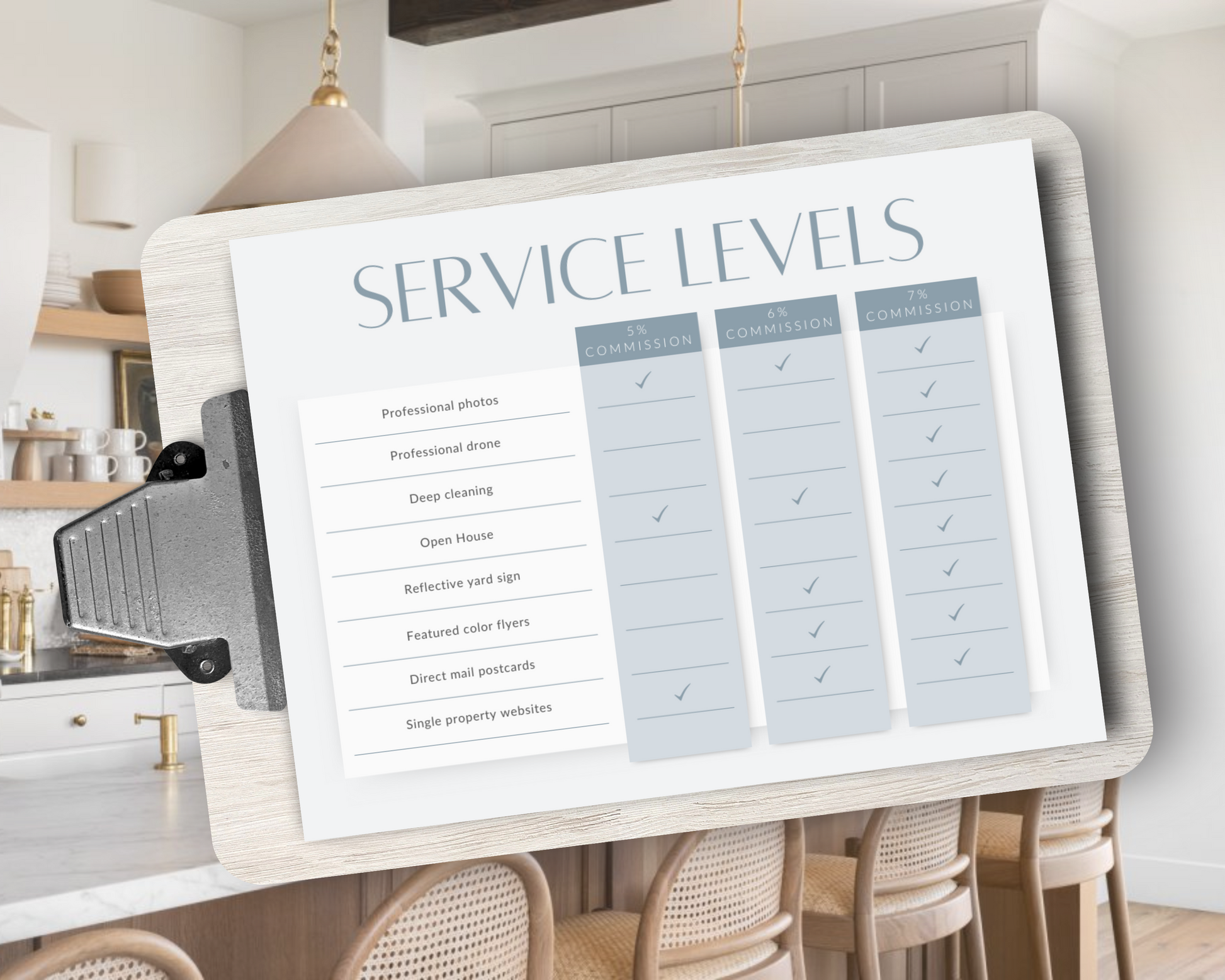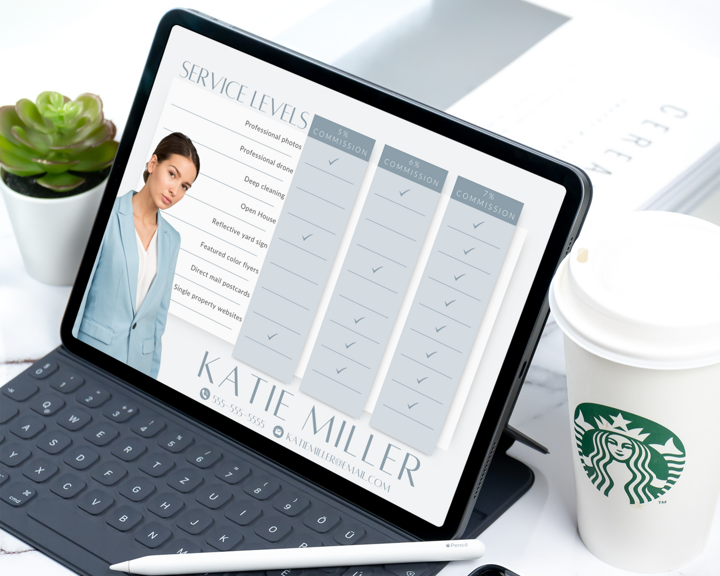 Real Estate Service Levels Template Real Estate Commission Sheets Templates Real Estate Marketing Listing Presentation Realtor Commission New Agent Canva Flyer