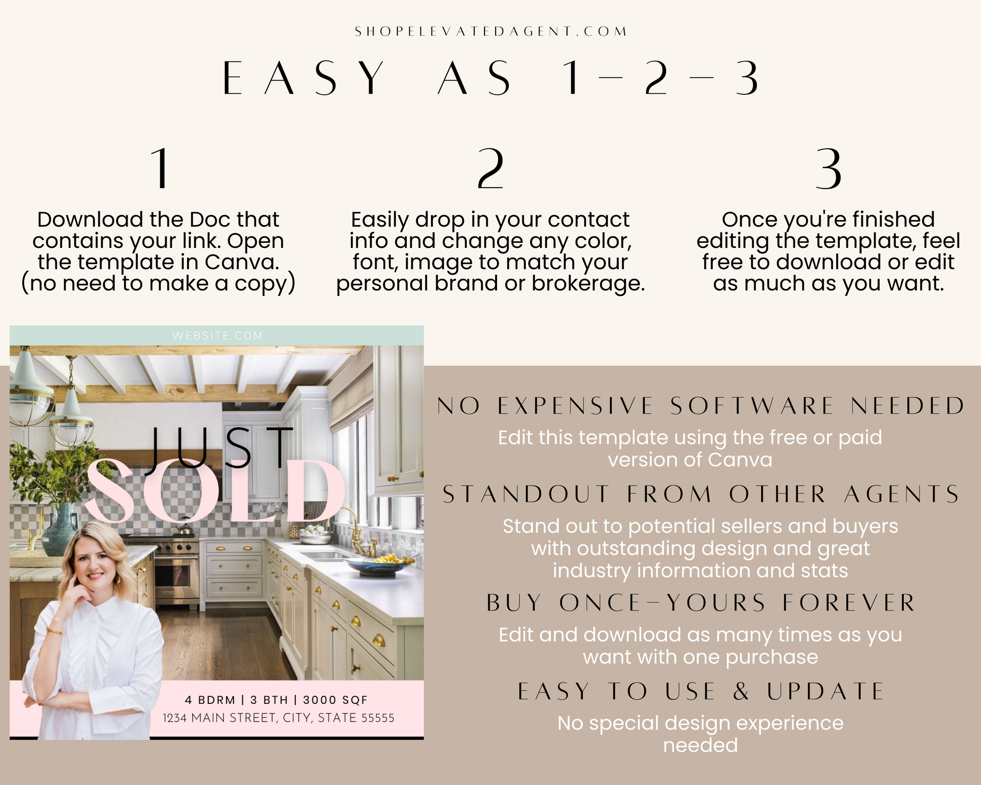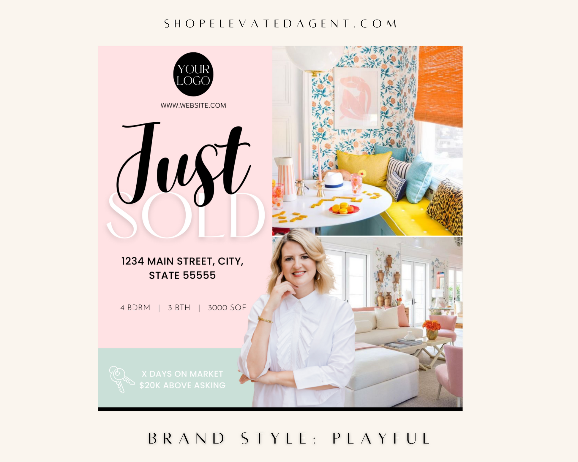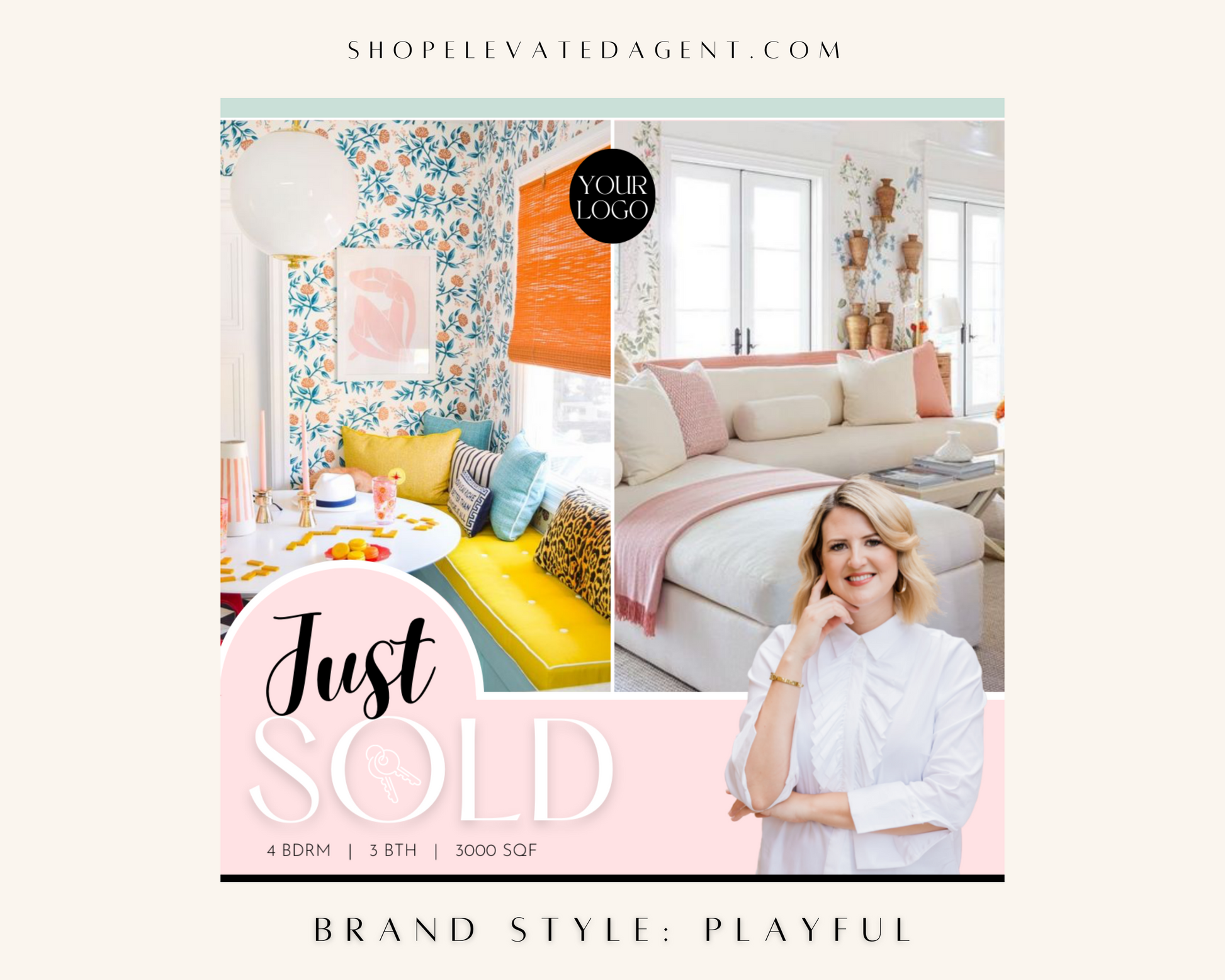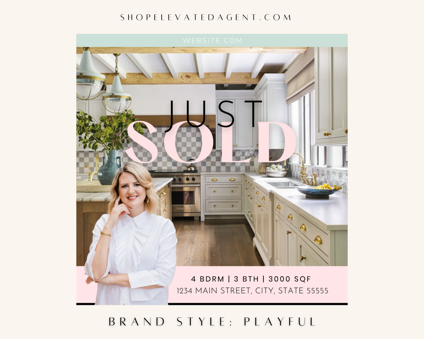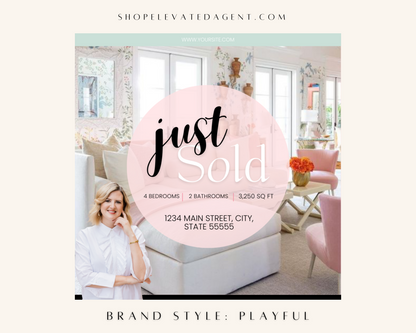 Show off your latest just listed home or the property you just sold in a stylish way! Real Estate marketing doesn't have to be boring, you can still show off your personality with these real estate templates. Real Estate Just Listed and Sold Instagram and Facebook Post social media frames sized for either Facebook or Instagram! Make all your real estate social media posts look branded and professional!